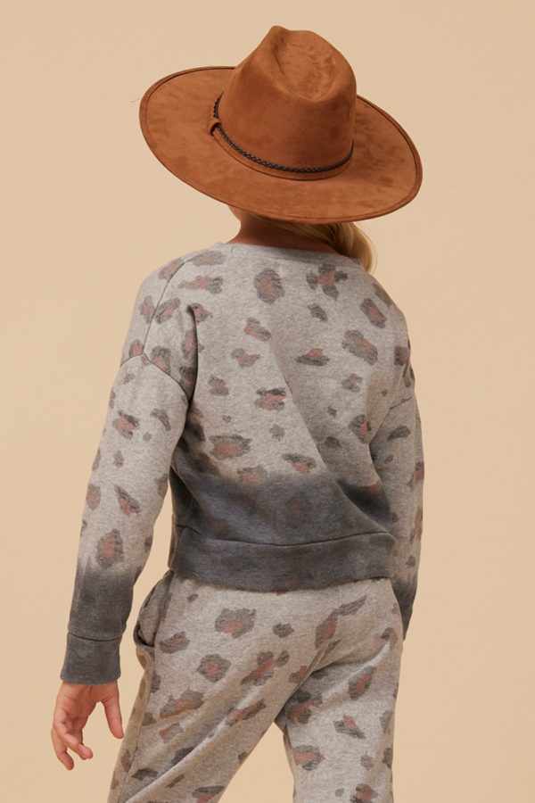 This Large Leopard Print Dip Dye Crewneck delivers standout style with everyday comfort. Featuring an on-trend cropped silhouette, it showcases a bold leopard pattern elevated by unique dip dye accents. The timeless crewneck design provides an easy, relaxed fit that works perfectly for creating casual yet fashion-conscious outfits.