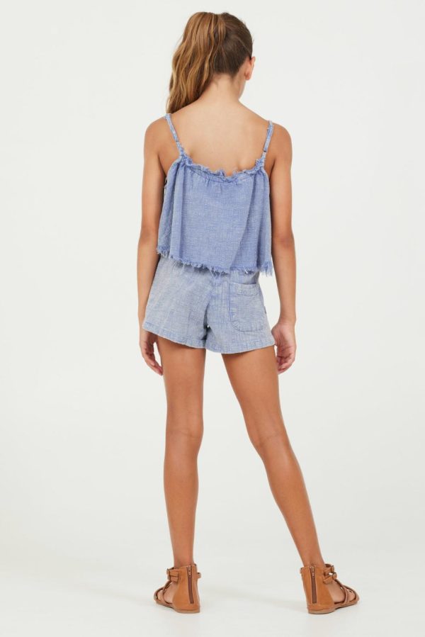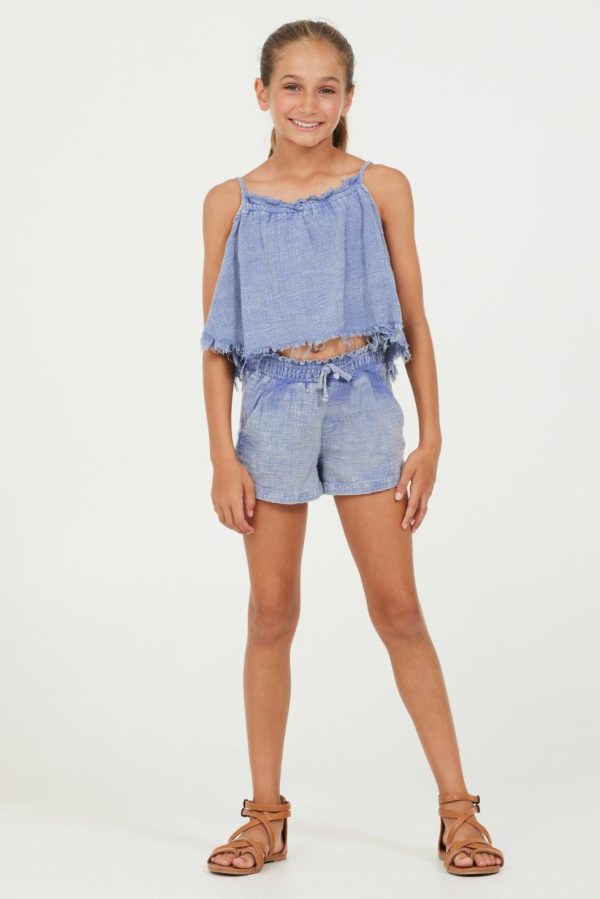 Experience ultimate comfort with our Plush Blue Washed Texture Flow Tank, featuring a relaxed fit and soft, pre-washed texture that moves with your child. The artfully frayed hem adds a cool, casual vibe that’s perfect for layering or wearing solo during warm weather. This versatile tank delivers effortless style for everyday adventures.