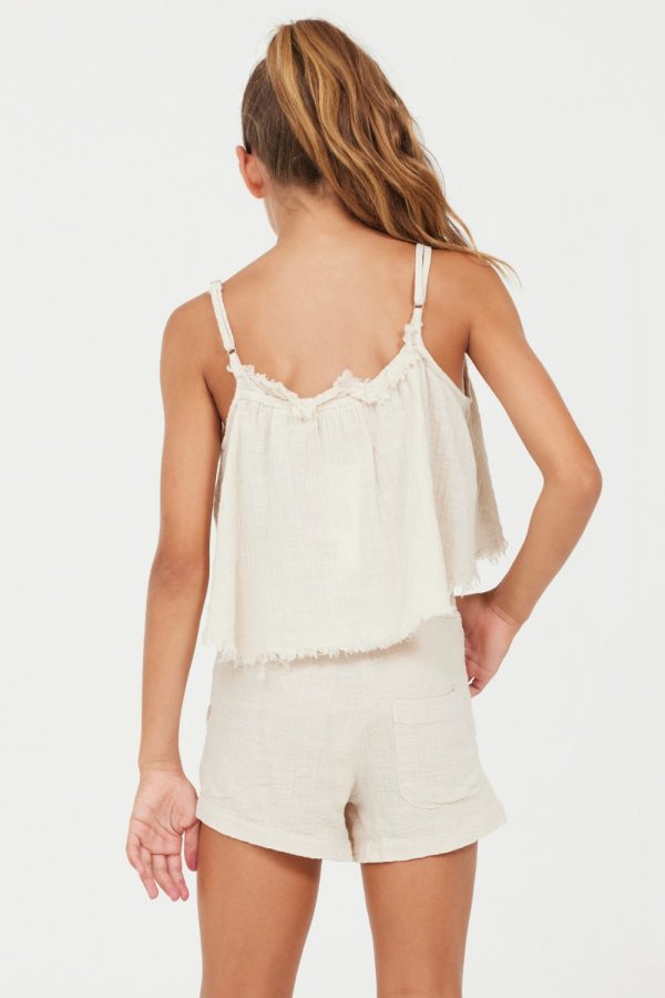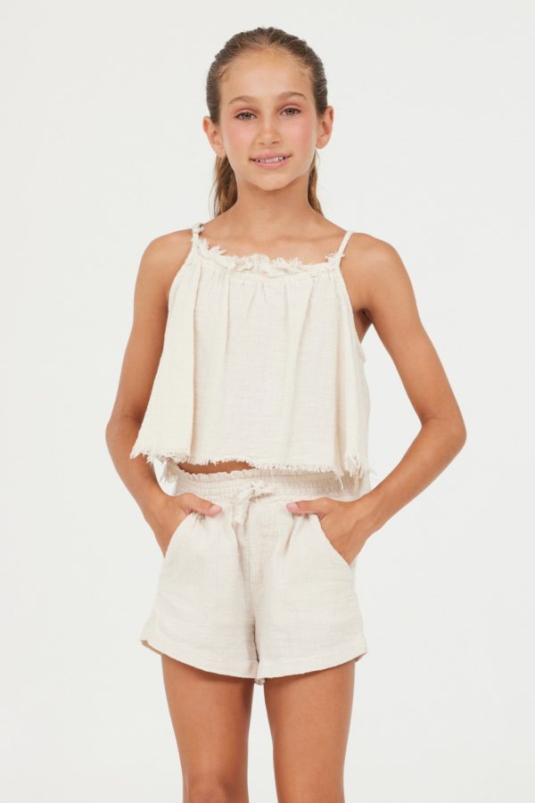 Discover the perfect blend of laid-back style and everyday comfort with our Sand Stone Washed Texture Flow Tank. This relaxed-fit top features a unique stone-washed texture that delivers authentic vintage character, while the lightweight fabric keeps kids cool and comfortable all day long. The intentionally frayed hem creates that effortlessly cool finish that works perfectly for playdates or casual outings.