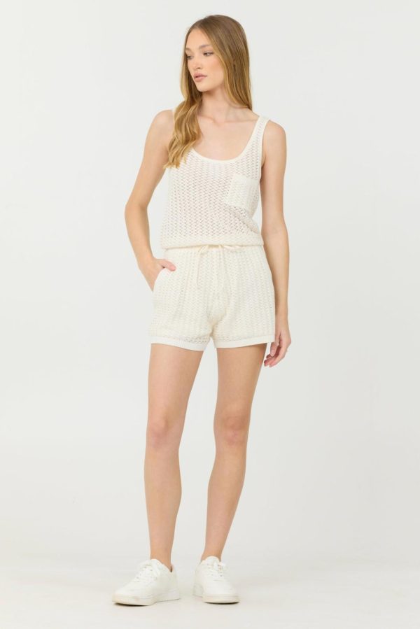 Discover the perfect blend of breezy comfort and chic style with our White Open Crochet Romper. Expertly crafted with an intricate open crochet pattern, this piece features a practical front pocket and adjustable tie waistband for your perfect customized fit. Ideal for sunny days and warm weather, this romper delivers a effortlessly relaxed vibe while maintaining a sophisticated, polished look.