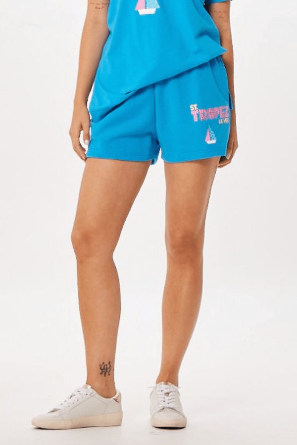 Experience ultimate comfort and effortless style with our Bright Blue St. Tropez Jet Setter Surf Wash Shorts, featuring a flexible elastic waistband that ensures the perfect fit and easy on-and-off wear. Showcasing a distinctive “St. Tropez” graphic and elegant gem accents, these shorts bring a sophisticated edge to your casual wardrobe. Perfect for beach days or relaxed outings, they deliver both practical functionality and refined coastal charm.