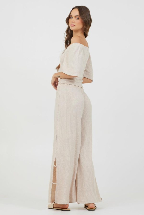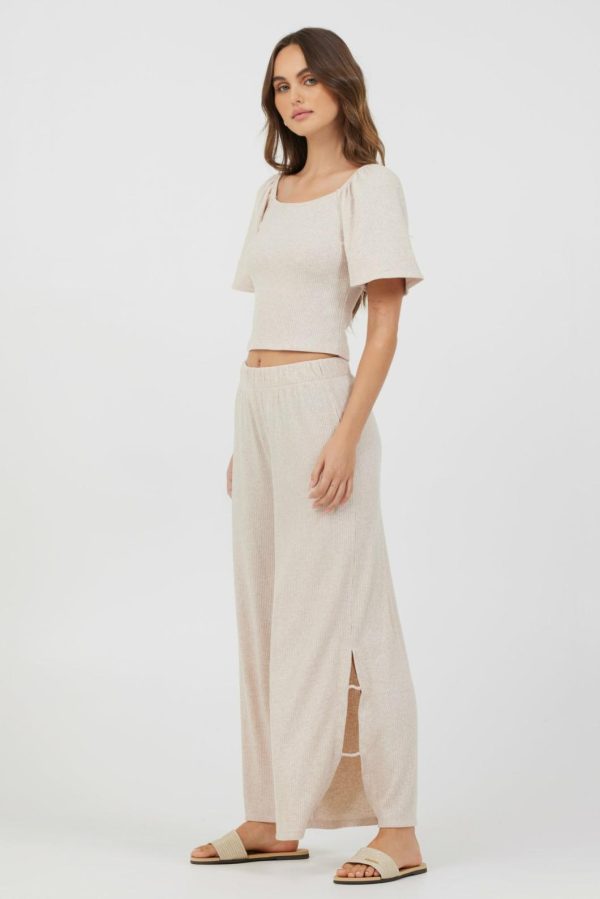 Elevate your casual wardrobe with this beautifully coordinated Heather Oatmeal Knit Top + Pants 2-Piece Set