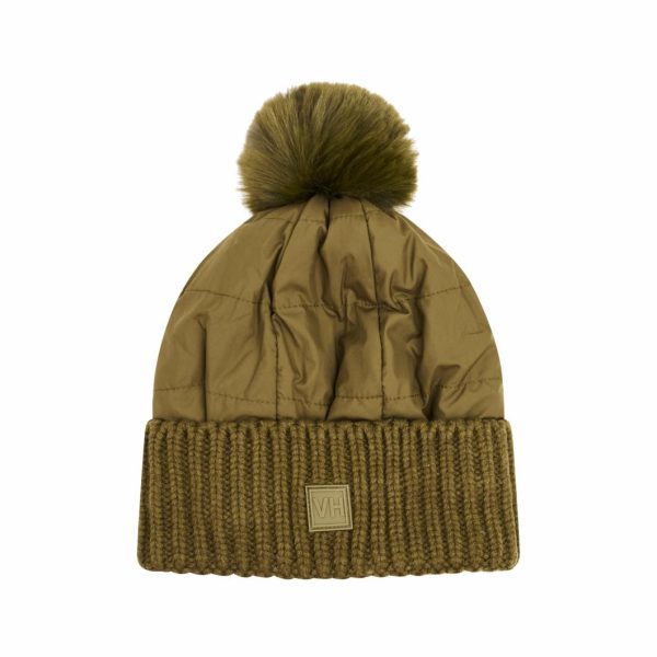 Experience cozy warmth and chic style with this olive puffer pom hat featuring a quilted nylon shell and ultra-soft polyester lining. The comfortable ribbed cuff provides a secure fit while the playful polyester pom adds a stylish finishing touch. Perfect for cold weather, this hat delivers exceptional insulation while maintaining a fashionable, put-together appearance.