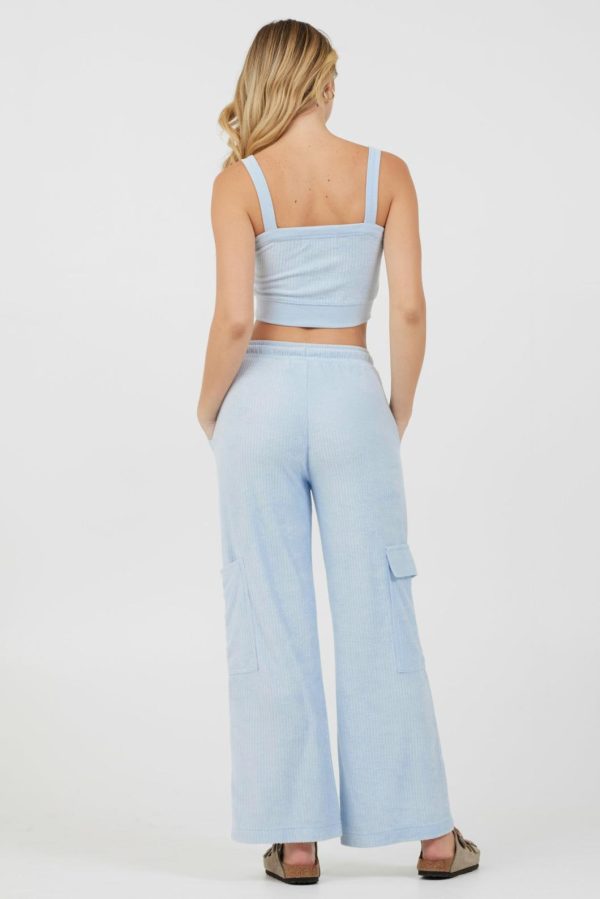 Experience ultimate comfort and everyday functionality with these Powder Blue Cord Terry Cargo Pants, featuring an adjustable drawstring waistband that ensures your perfect custom fit. Designed with practical front and cargo pockets, these pants provide generous storage space while maintaining that effortlessly cool, relaxed casual style you love. Perfect for daily wear, they masterfully blend expert tailoring with comfortable ease.