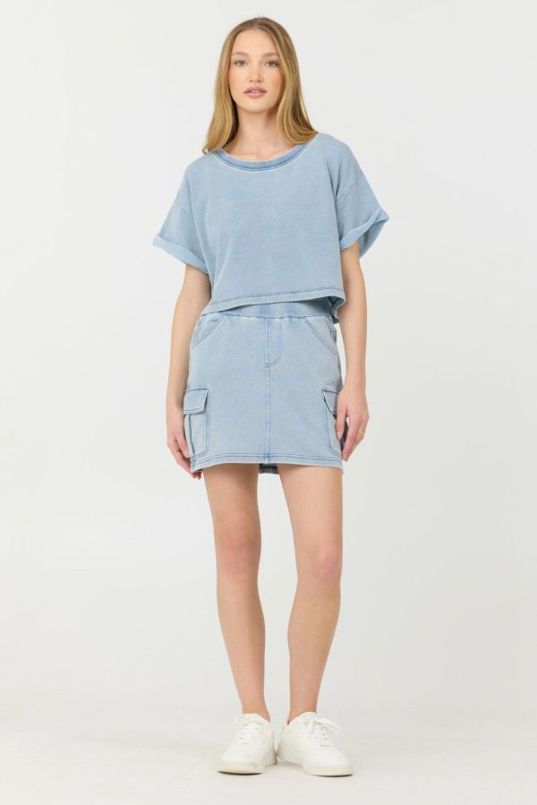 The Washed Denim Terry Fleece Cargo Skirt features: