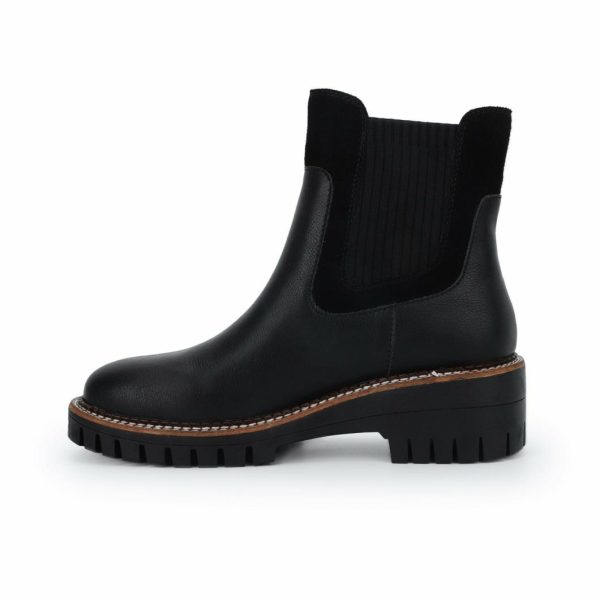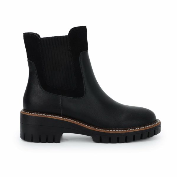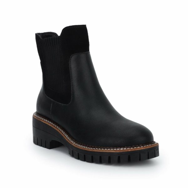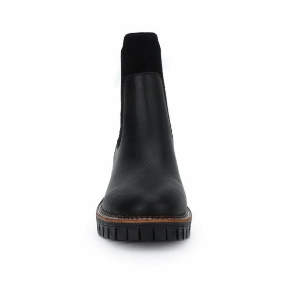 Effortlessly stylish EAGLE bootie in sleek black combines synthetic, leather, and suede materials for versatile wear. This slide-on design eliminates complicated fastenings while providing all-day comfort. Fits true to size for hassle-free ordering. Perfect for elevating casual outfits or complementing more polished looks.