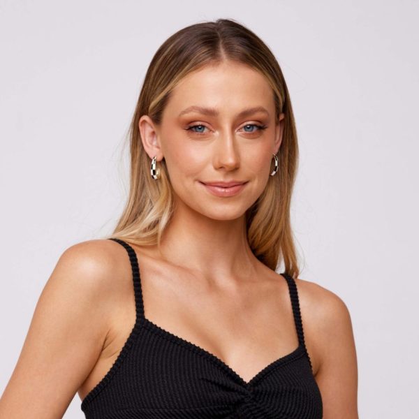 The Parker Earrings combine elegance and durability with 18K gold-plated copper and a sterling silver post, making them safe for sensitive ears. Measuring 1.18 inches in height and 0.24 inches in width, these lightweight earrings resist tarnishing and are waterproof for everyday wear. To keep their shine, avoid contact with soaps, perfumes, and lotions, and polish gently with a lint-free microfiber cloth. Perfect for adding a subtle touch of sophistication to any outfit.