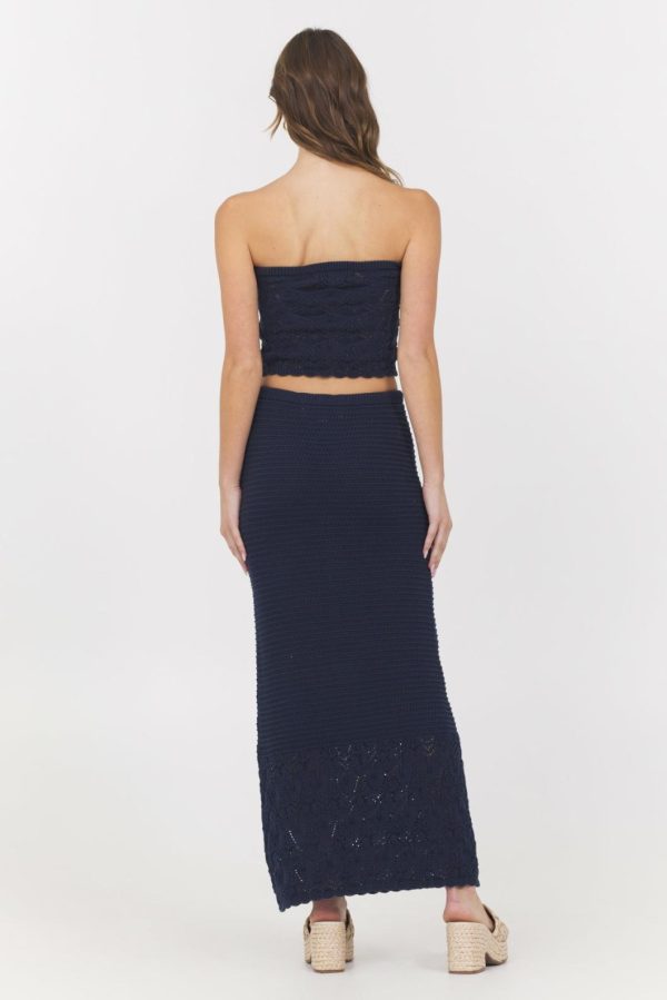 Women Vintage Havana Matching Sets | Navy Crochet Top + Skirt 2-Piece Set