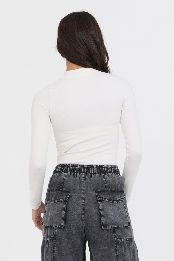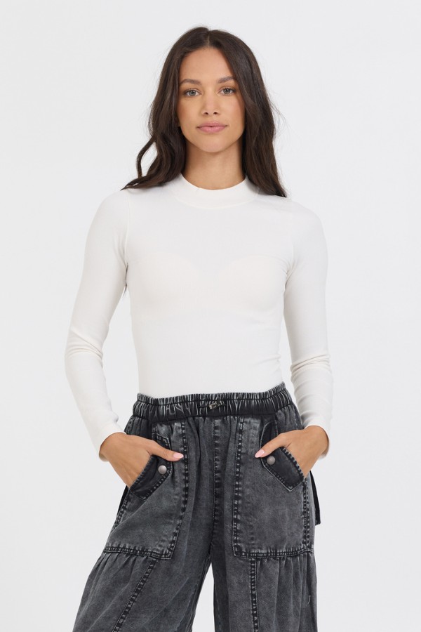 The Pale Ivory Seamless Mock Neck Top features: