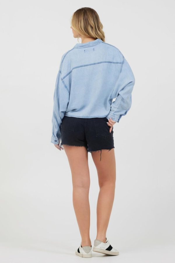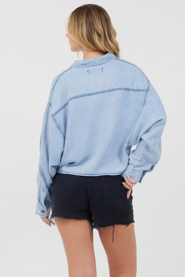 The Washed Denim Tencel Cropped Button Up combines casual style with expert tailoring. Featuring a cropped fit and a practical cargo pocket, this button-up shirt offers both comfort and functionality. Crafted from soft, washed denim Tencel, it provides a breathable, lightweight feel ideal for everyday wear. Perfect for layering or wearing on its own, this versatile piece adds a modern edge to any wardrobe.