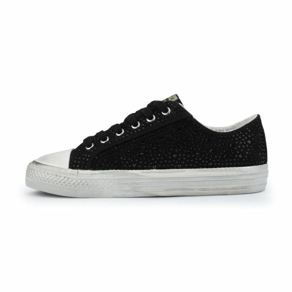Step into instant style with these slip-on STARBURST sneakers in Black Rhinestone, designed for easy wear without laces while delivering eye-catching sparkle to elevate any look. The artfully distressed outsole creates a perfectly broken-in aesthetic that transitions seamlessly from casual daytime wear to evening outfits. True-to-size construction guarantees immediate comfort from the very first wear.